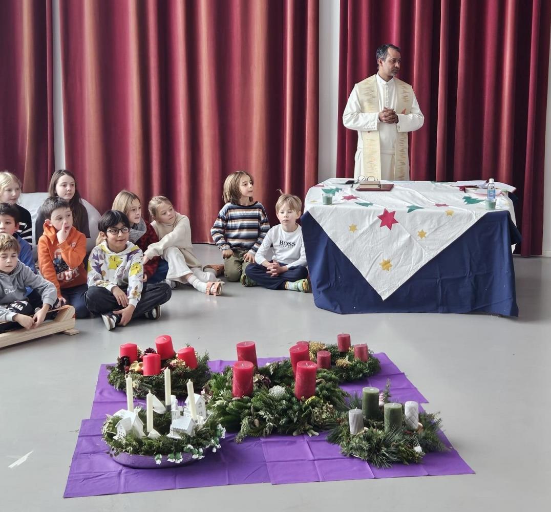 Wir bedanken uns bei unseren Eltern für die besonders schönen Adventkränze und unserem Herrn Pfarrer Roy für die feierliche Gestaltung.