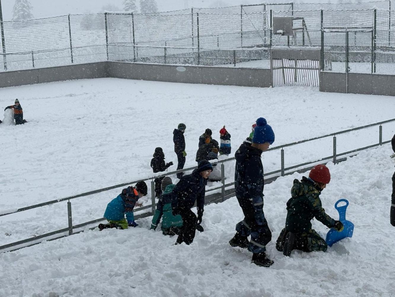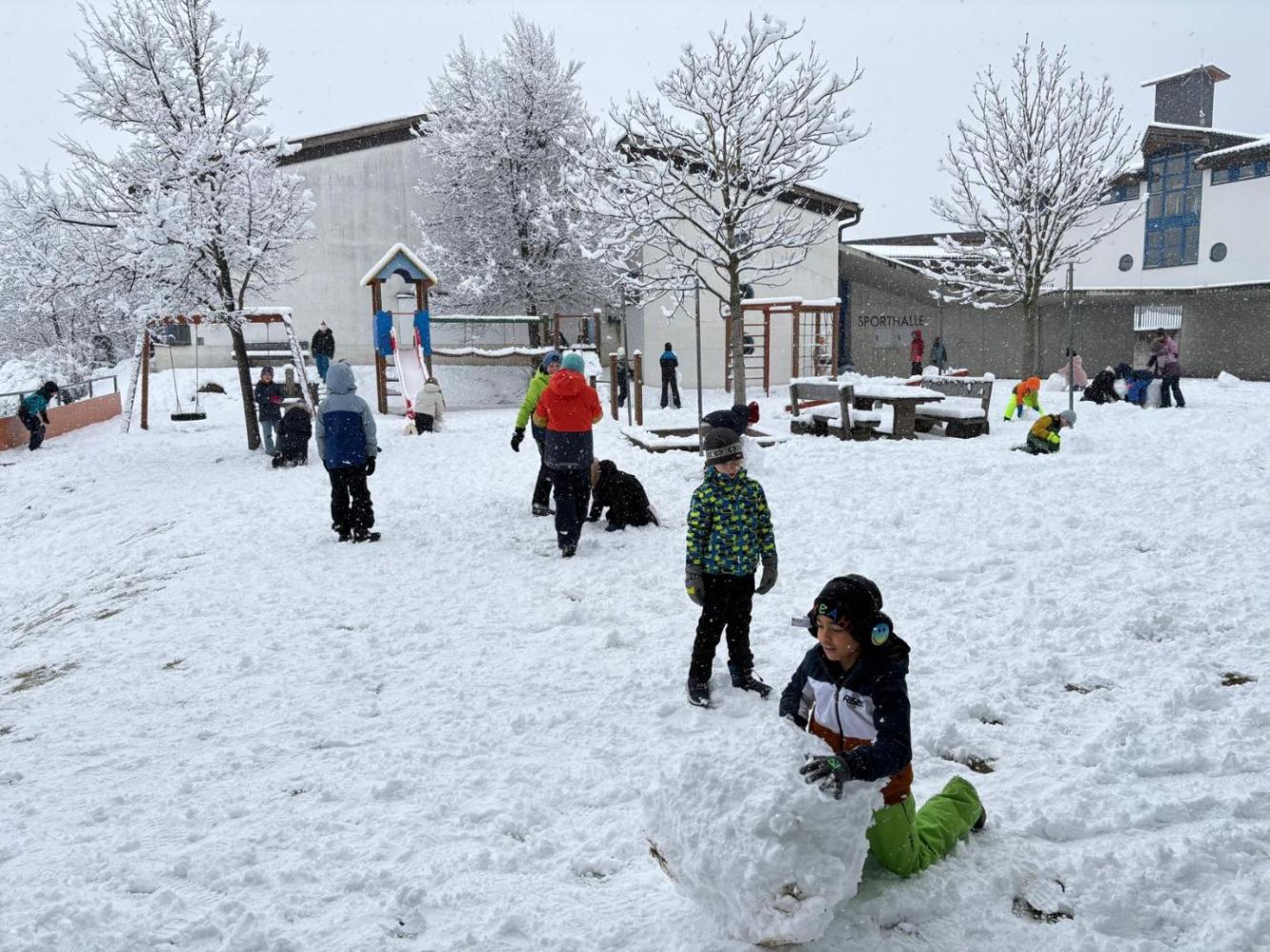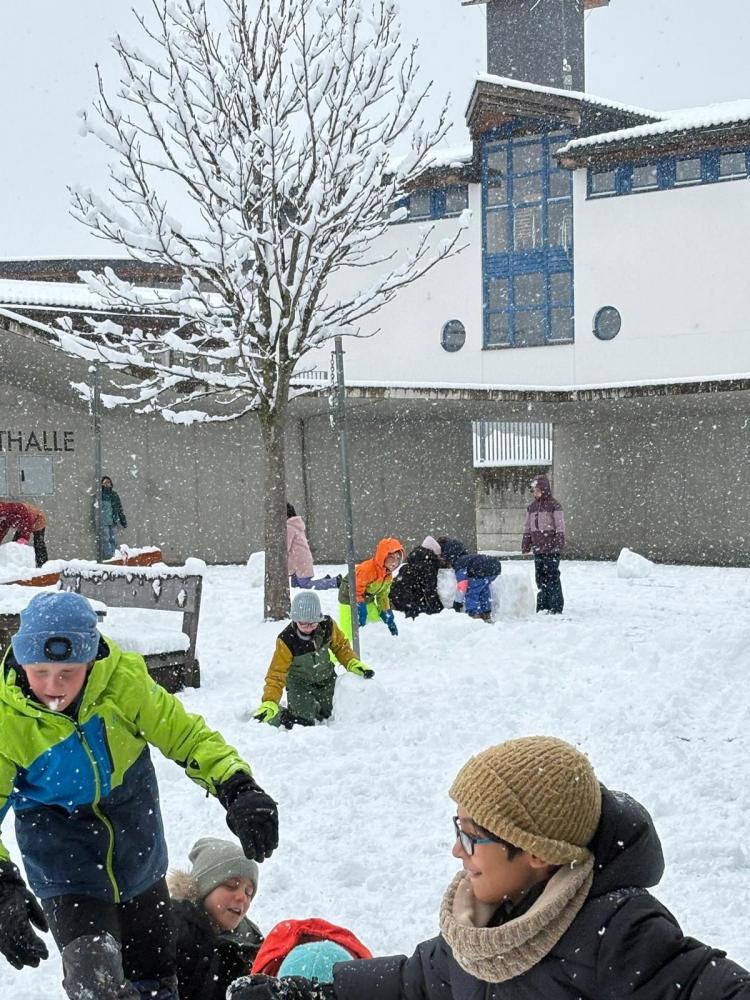 Alle Kinder freuten sich sehr über den ersten Schneefall, es wurde gerutscht, gespielt und gebaut.