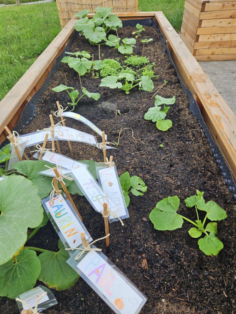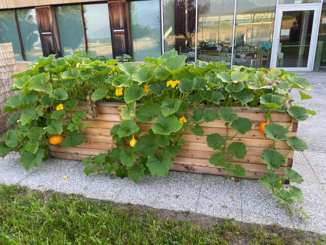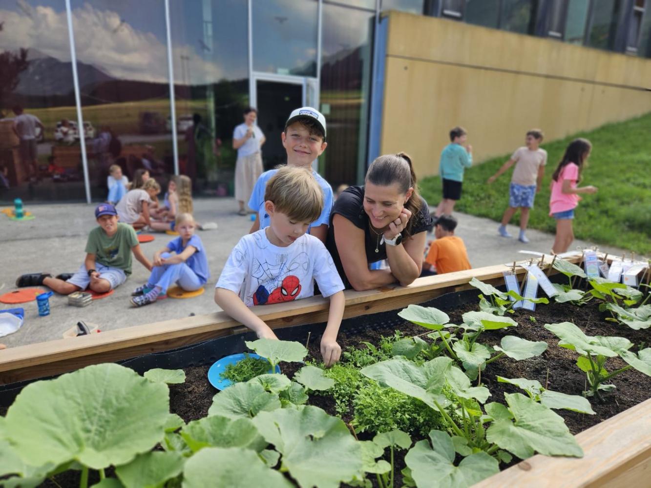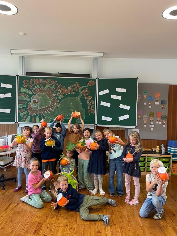 Schon im Frühjahr 2025 setzen die Kindergartenkinder Kürbispflanzen, die sie dann als Erstklassler im Herbst mit ihrer Lehrerin Nicola ernten konnten.