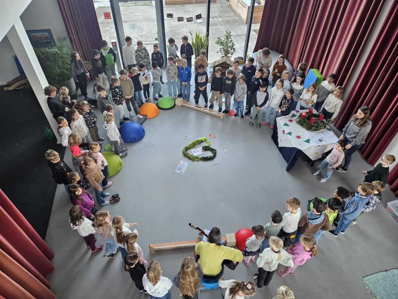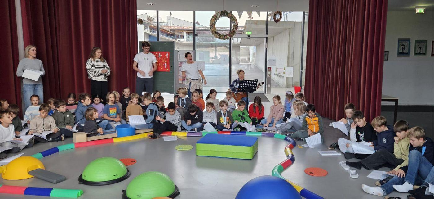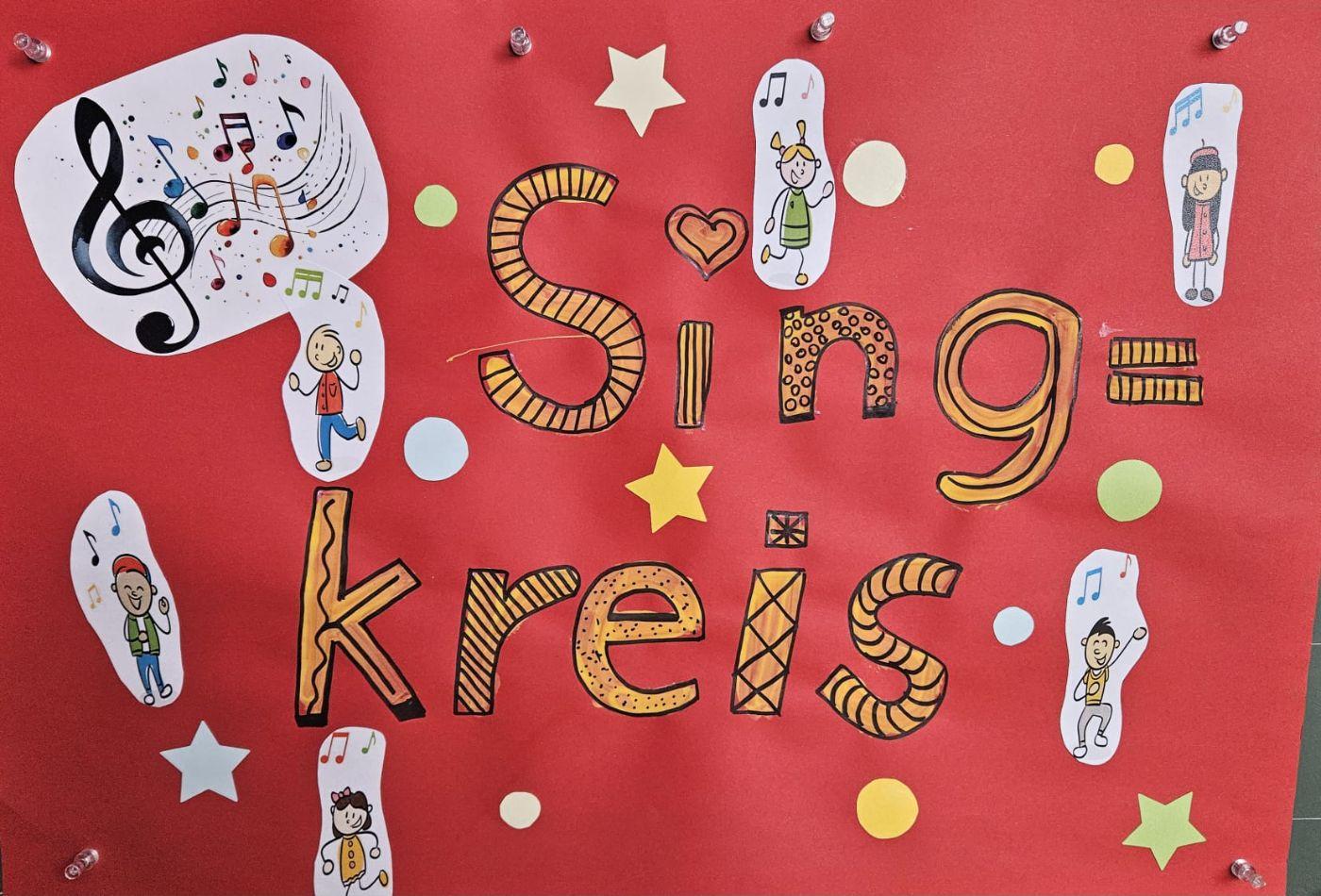 Jeden ersten Montag im Monat treffen wir uns alle zu einem gemeinsamen Singkreis in der Aula.